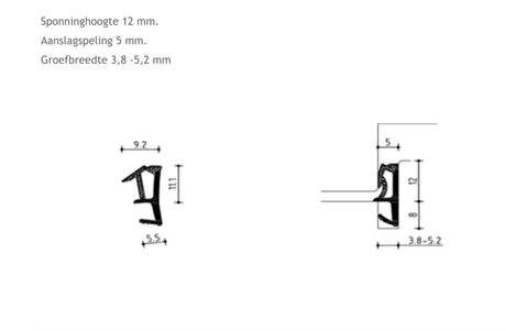 Rahmengummi für Holz-Dreh-Kipp-Fenster und PSK-Schiebetüren, Falz 12 mm, Preis pro Meter.