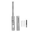 GU-Schiebetürbeschlag mit Schale außen Griff mit Zylinderloch mit 3 Schraublöchern. - RAL 9006 Aluminium ist nachbestellt und wird versendet, sobald es wieder vorrätig ist.