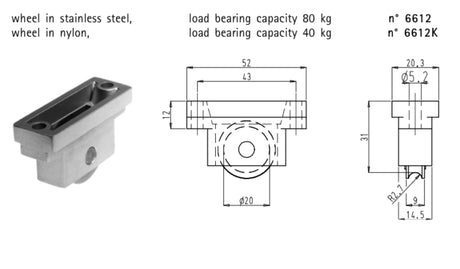 Sobinco rouleau de porte coulissante en acier inoxydable (RVS) simple, 80kg 6612