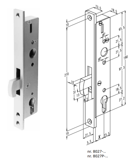 Sobinco PENTALOCK 6790 serrure à crochet pour porte coulissante