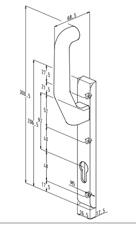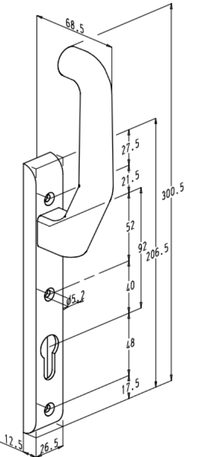 Sobinco 8027-25 serrure à crochet pour porte coulissante
